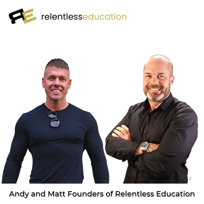 Hey, we are Andy and Matt from Relentless Education. We collectively have over 30 years of experience in business success. Together we have built million dollar business's, created successful TV shows, sold millions from stage and have trained 1000's of coaches,